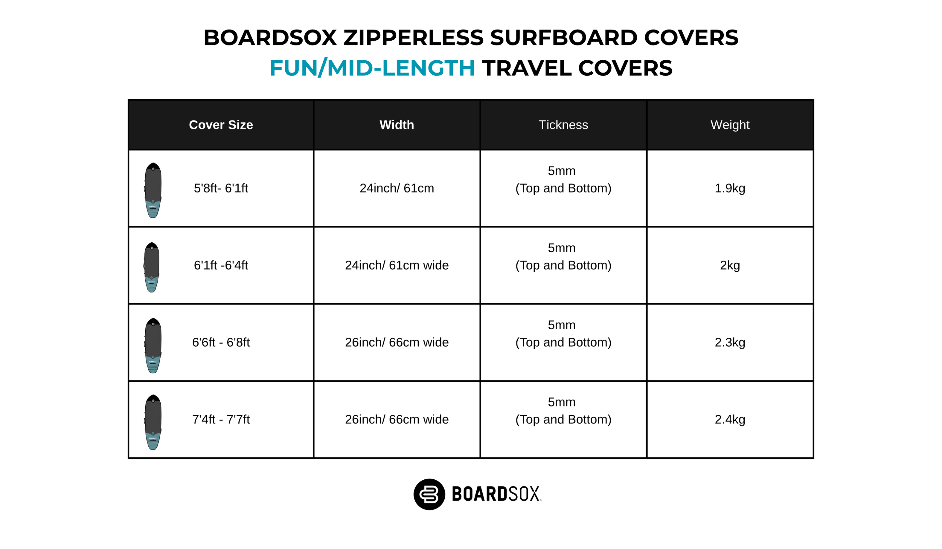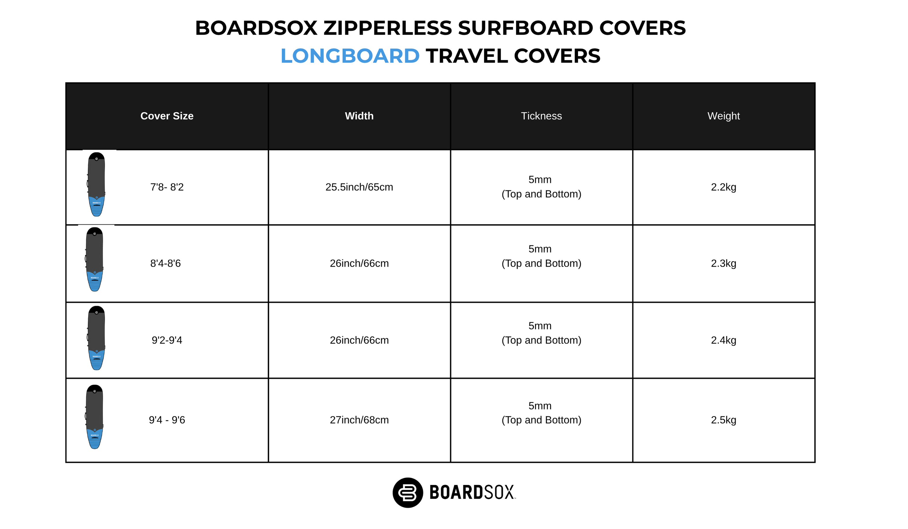 Boardsox Surfboard Cover Size Guide