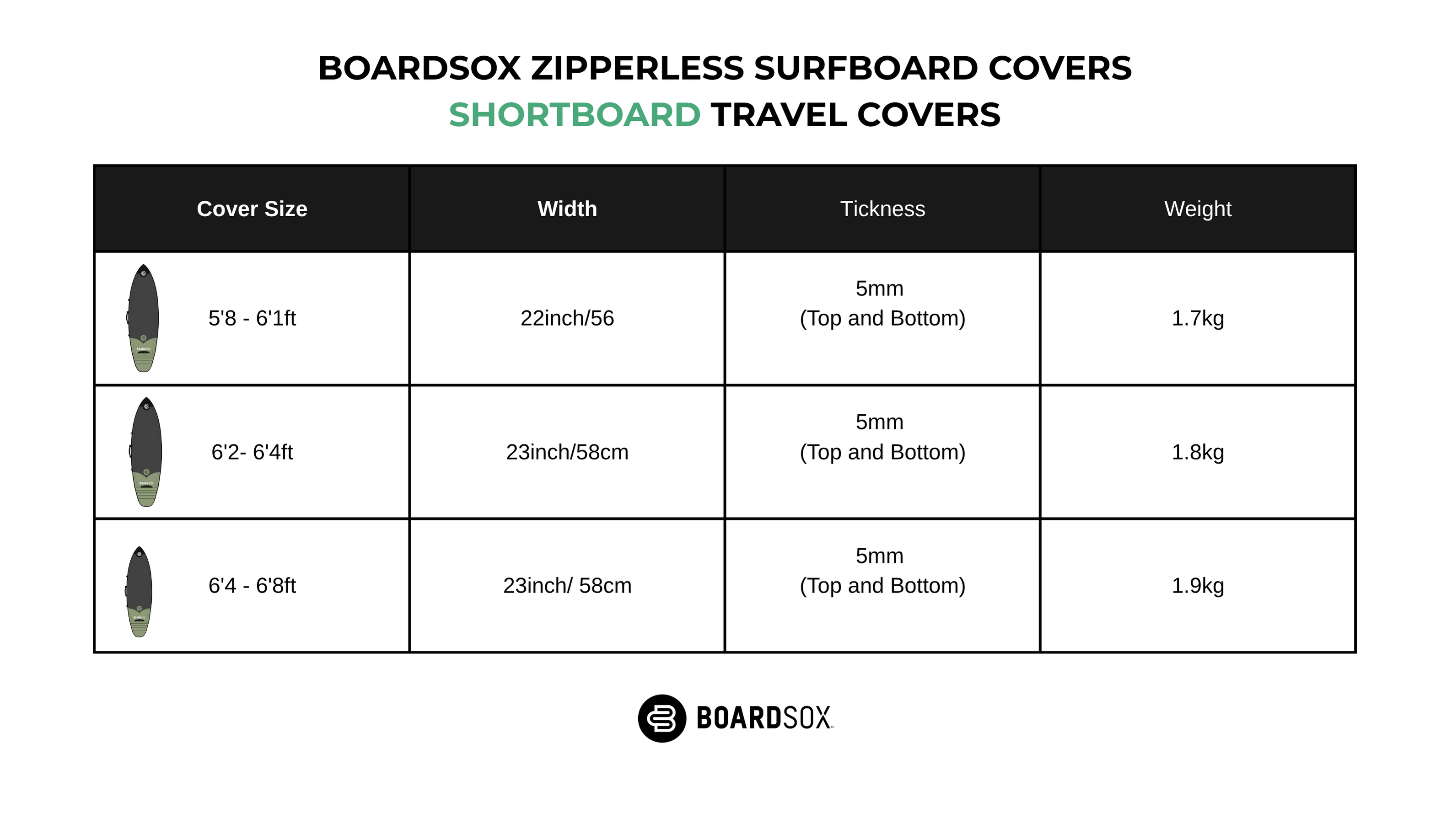 Boardsox Canvas + Zipperless Surfboard SIZE GUIDE