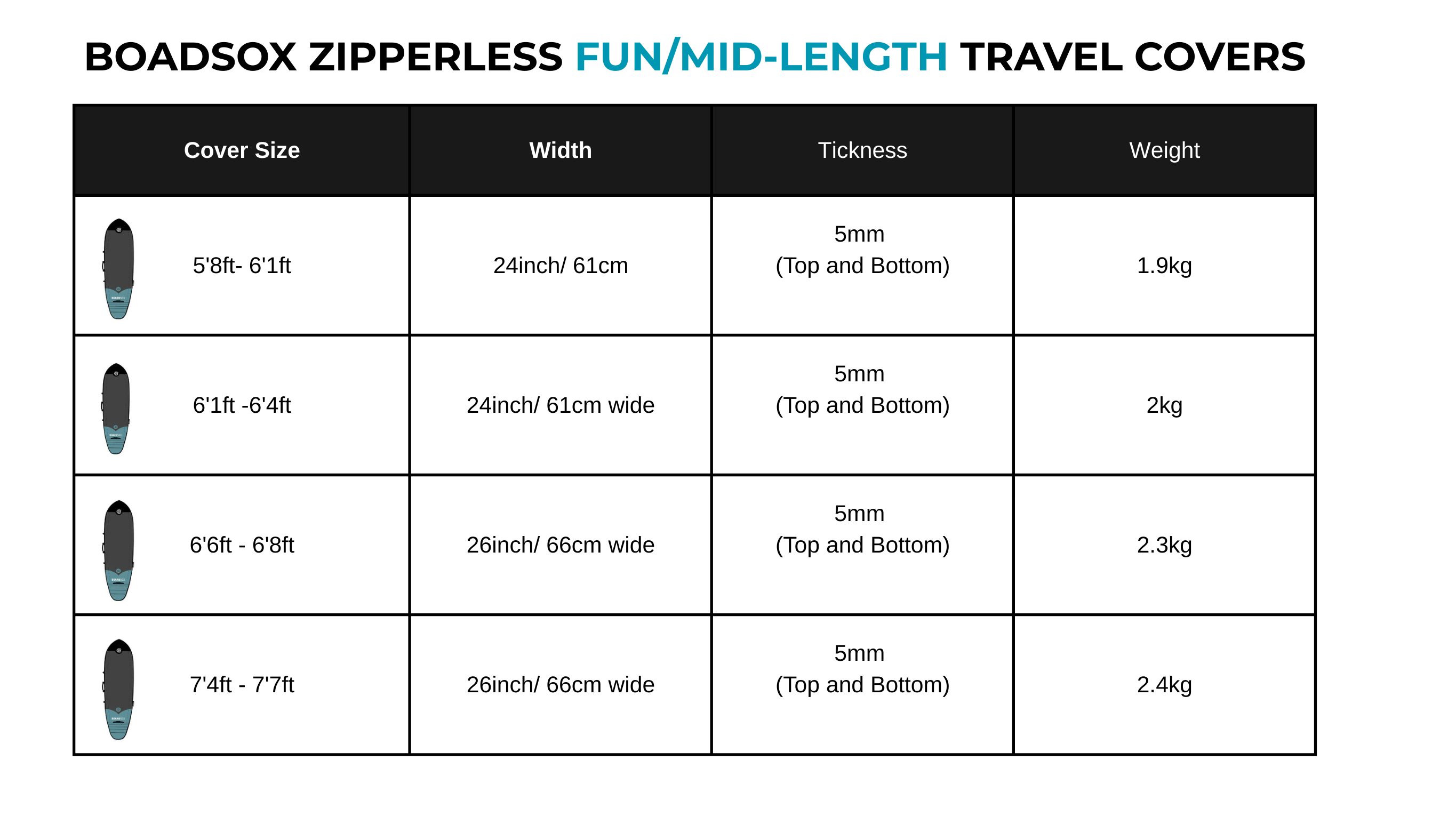 Boardsox Surfboard Cover Size Guide